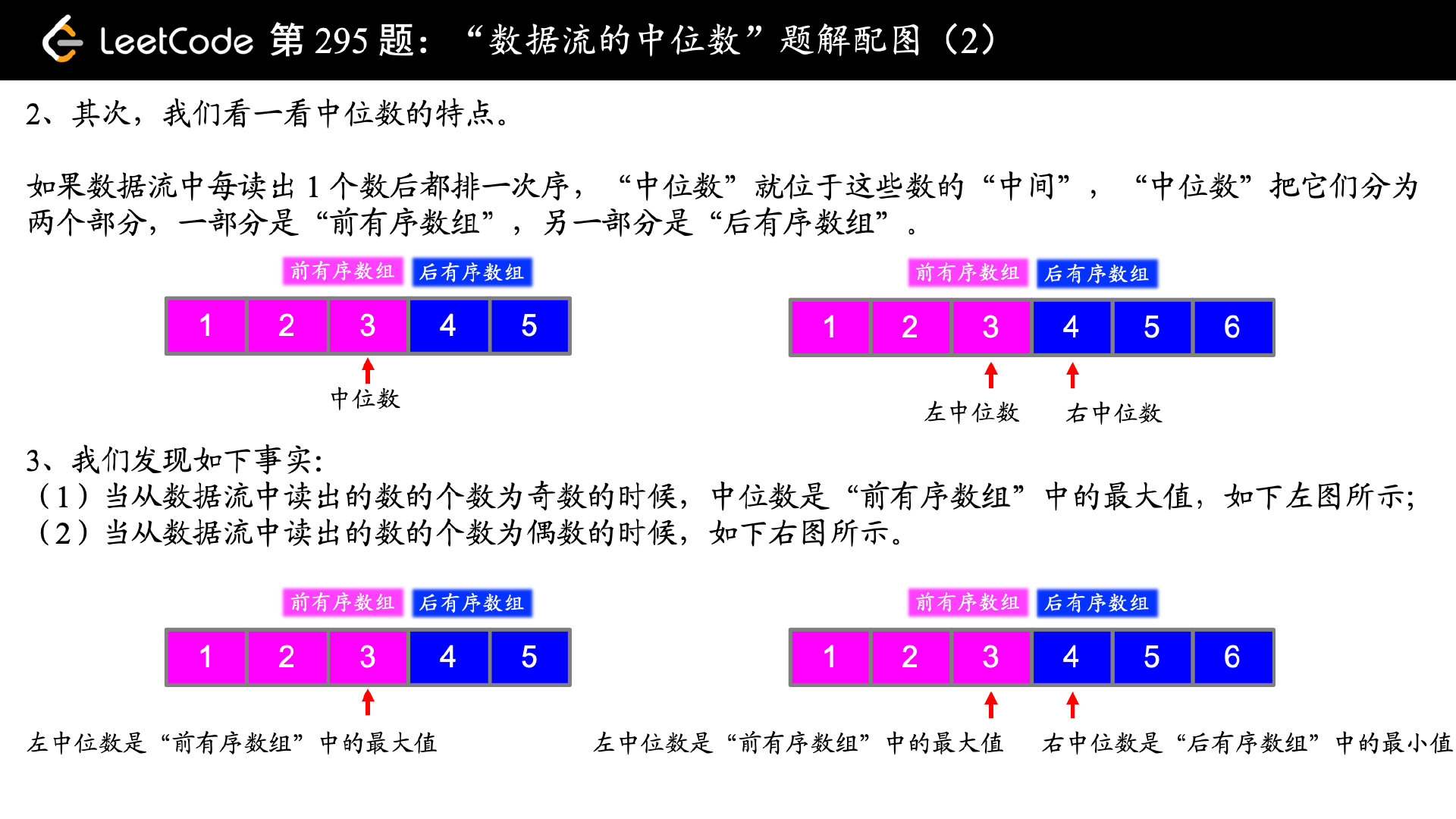 因此可以把数组分成两半,小的一半用大顶堆,留出最大数;大的一半用小顶堆,留出最小数。