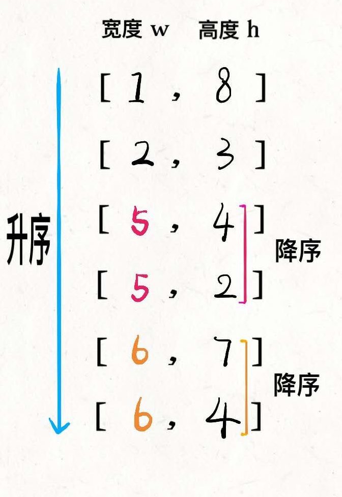 宽度升序排序,高度降序排序,然后在高度上,找最长递增子序列