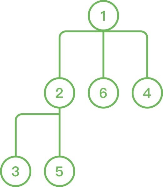输入:N = 6, leadership = [[1, 2], [1, 6], [2, 3], [2, 5], [1, 4]], operations = [[1, 1, 500], [2, 2, 50], [3, 1], [2, 6, 15], [3, 1]] 输出:[650, 665] 解释:团队的管理关系见下图。 第一次查询时,每个成员得到的LeetCoin的数量分别为(按编号顺序):500, 50, 50, 0, 50, 0; 第二次查询时,每个成员得到的LeetCoin的数量分别为(按编号顺序):500, 50, 50, 0, 50, 15.
